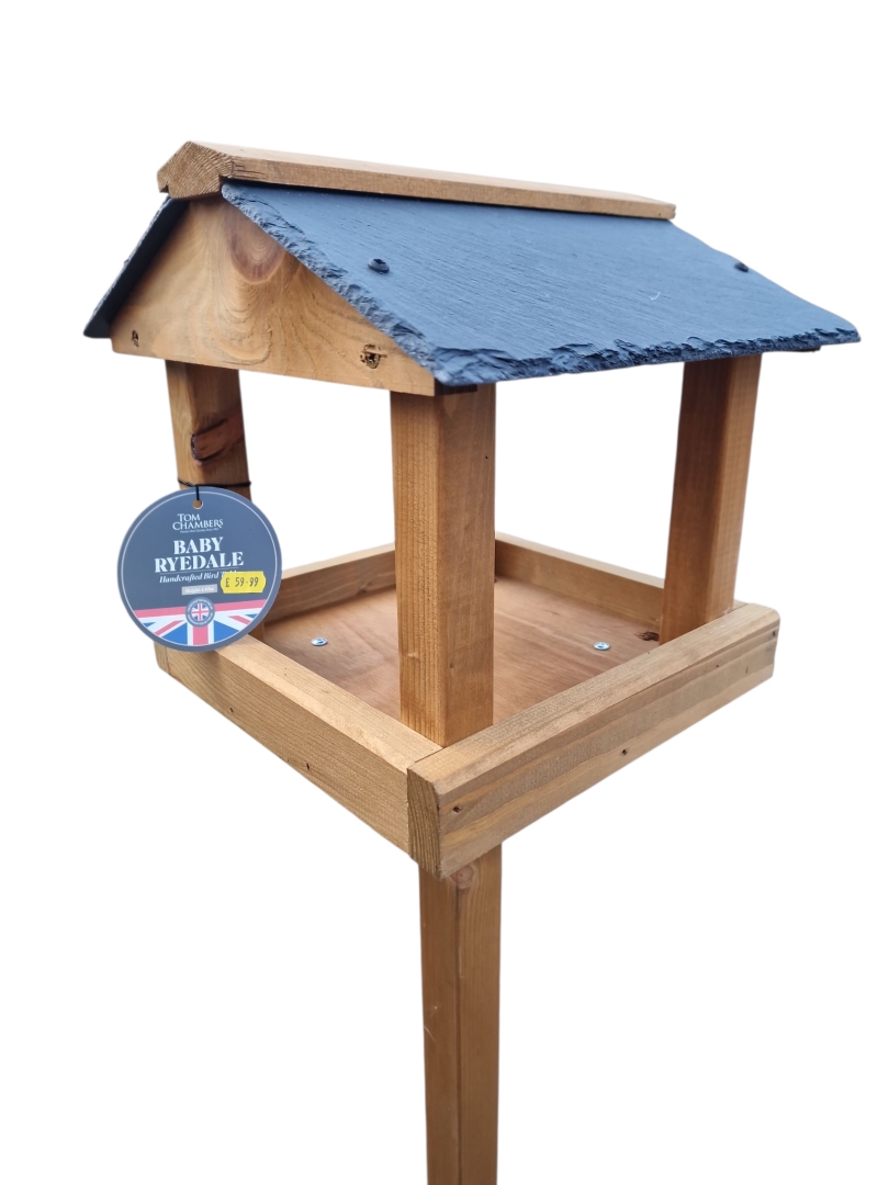 The Tom Chambers Baby Ryedale Bird Table is a stylish, compact feeding station perfect for any garden, patio, or outdoor space. Handcrafted in the UK from durable timber, it provides a safe and sheltered feeding area for wild birds while enhancing your garden with its rustic charm.