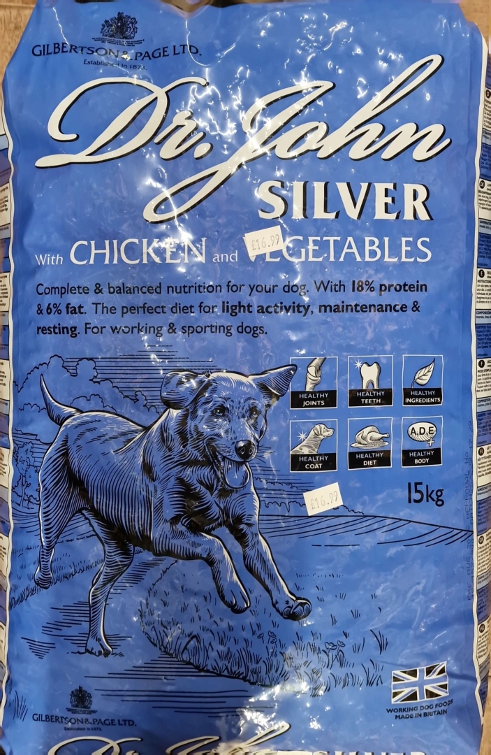 Give your dog the nourishment they deserve with Dr.John Silver with Chicken and Vegetables, a complete and balanced dry food formulated by Gilbertson & Page Ltd. (Established 1873). This recipe provides the perfect balance of nutrition and taste, designed for working and sporting dogs during light activity, maintenance, or rest periods.