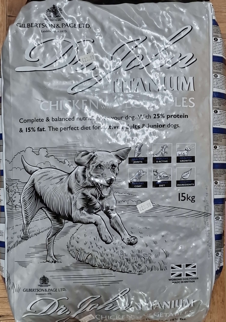 Support your dog's active lifestyle with Dr.John Titanium Chicken with Vegetables, a complete and balanced dry food crafted by Gilbertson & Page Ltd. (Established 1873). This high-quality formula is designed for active adult and junior dogs, providing the perfect balance of protein, fat, and essential nutrients for sustained energy, strong muscles, and healthy development.